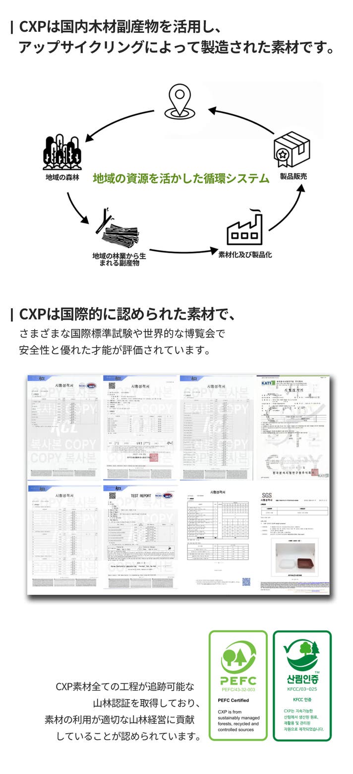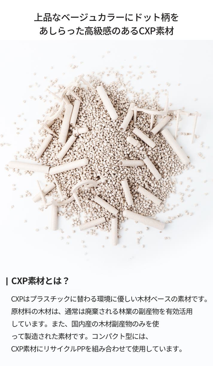 - アルミ精密加工で仕上げたシャープ型と、林業副産物CXPを活用したサステナブルなコンパクト型。