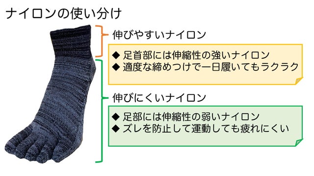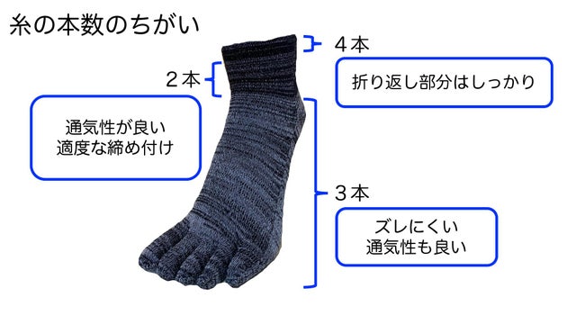 見た目は何ら変わりのないどこにでもある五本指靴下、厳しく言うと見た目も悪い