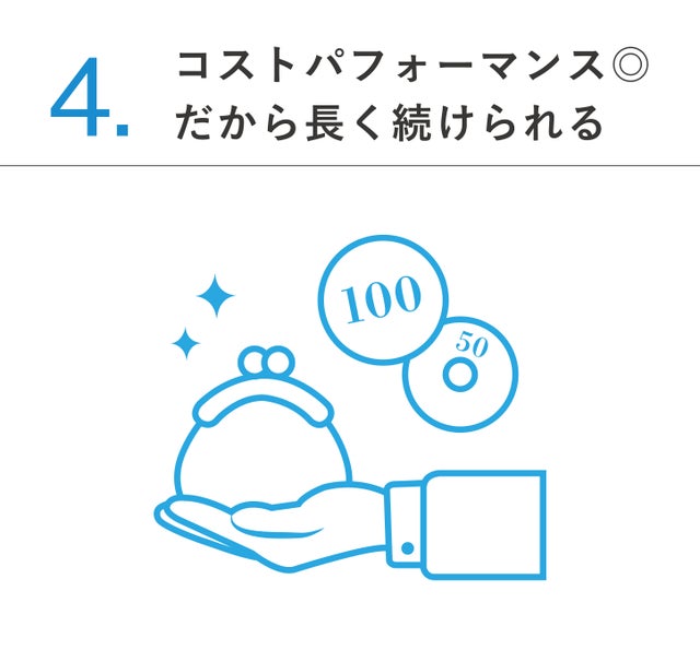 - 1本で2か月分。1日150円。長く使用していただくためのコストパフォーマンス