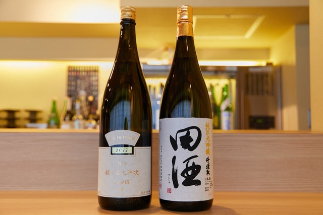 『然』では、季節や食材に合わせ、常時20〜30種類の日本酒をご用意しております。これまで営業する中で、大将による料理に合わせた日本酒のペアリングがお客様から大変ご好評をいただいておりました。