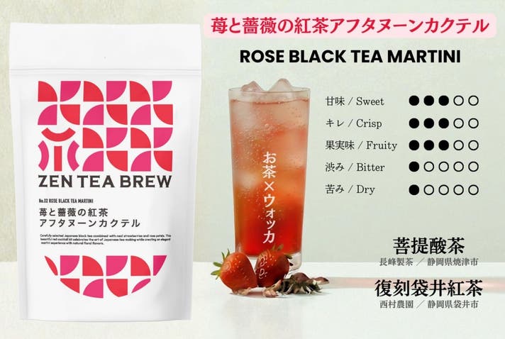ZEN TEA BREWのDIYカクテルキットの主役は、お茶処静岡県で栽培された茶葉です。数百年にわたり徳川家康のお膝元で、献上品としても扱われた茶葉に「300年ぶりのイノベーション」を起こす静岡発の商品。