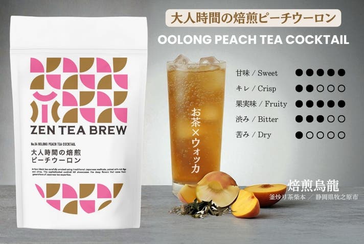 私は、こうした希少で高品質な茶葉を、新しい形で世界に届けたいと考えました。そうして生まれたのが、お茶とお酒を組み合わせた「ZEN TEA BREW」です。実は40度のアルコールは、カテキンやテアニンなどの抽出に最適で、お湯の約1.4倍の効率があることを発見しました。お茶の旨味、香り、苦み、そして果実からの甘みや芳醇さ。このハーモニーが、新たな体験を生み出します。