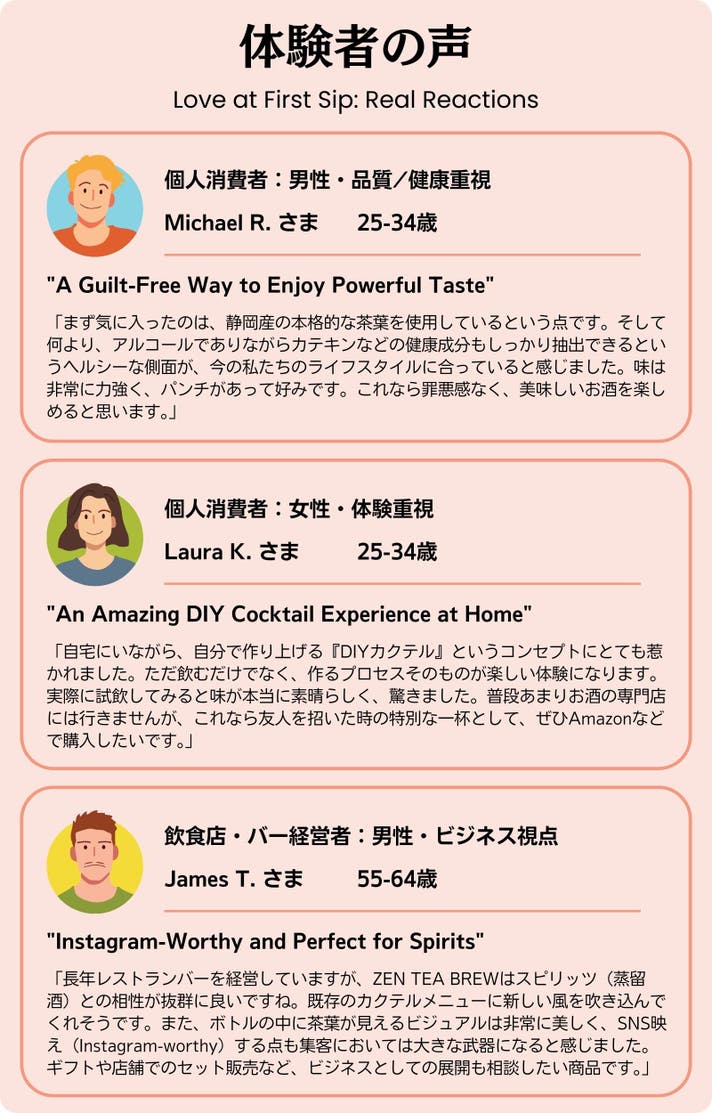 アメリカではハードティー(ティーアルコール)市場が前年比130%以上の成長を遂げており、健康志向の高まりとともに大きな可能性を感じています。ZEN TEA BREWは天然成分にこだわり、「最も幸せな時間のためのちょっとしたセルフケア」として、グローバル市場での展開を目指しています。