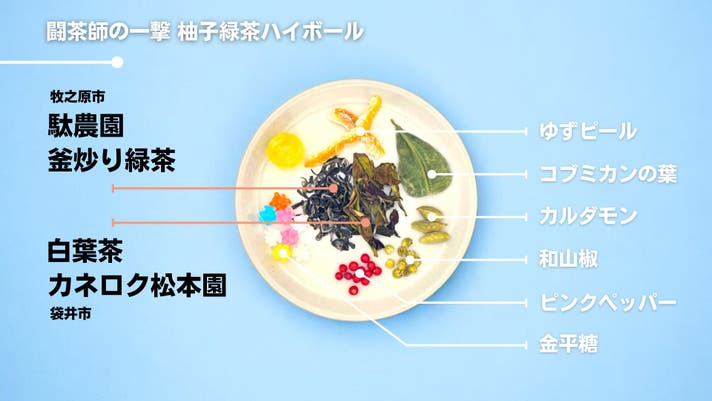 1)闘茶師の一撃柚子緑茶ハーボール:緑茶×柚子×和山椒