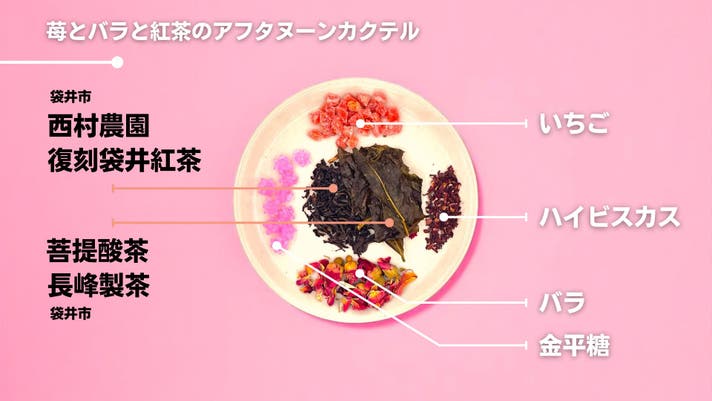 2)苺と薔薇と紅茶のアフタヌーンカクテル:紅茶×いちご×薔薇