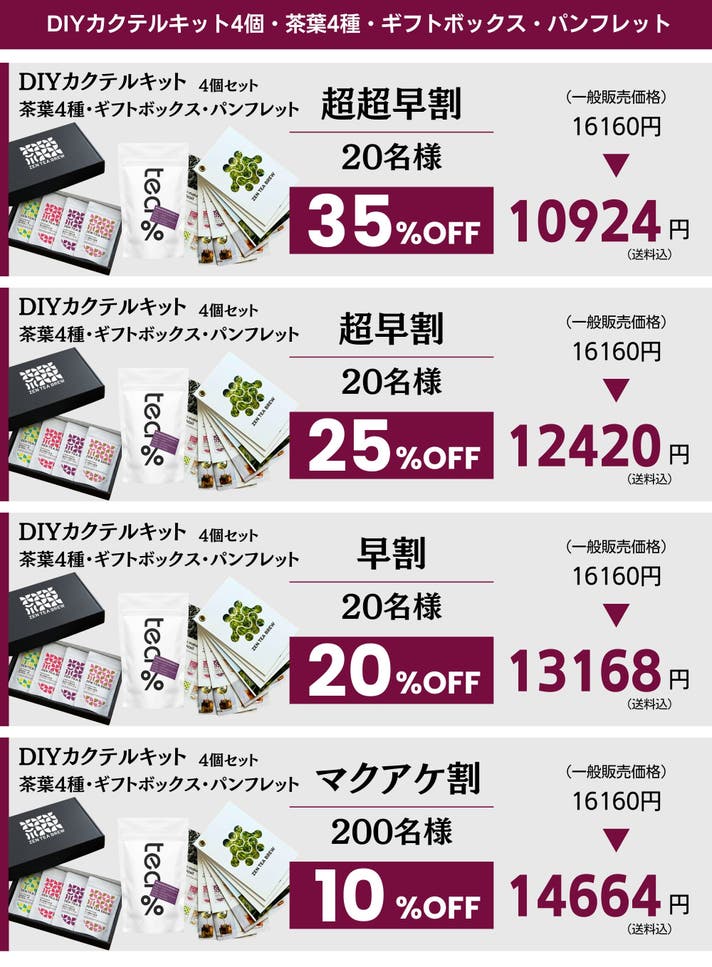【超超早割35%OFF】DIYカクテルキット4種・ギフト・茶葉4種・パンフレット