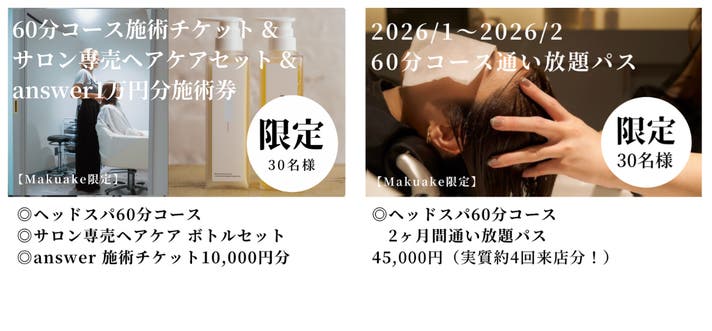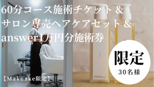 また、系列の美容室answer BEAUTY SALONでご使用いただける、10,000円分の施術チケットがセットになった、大変お得なリターンとなっております。