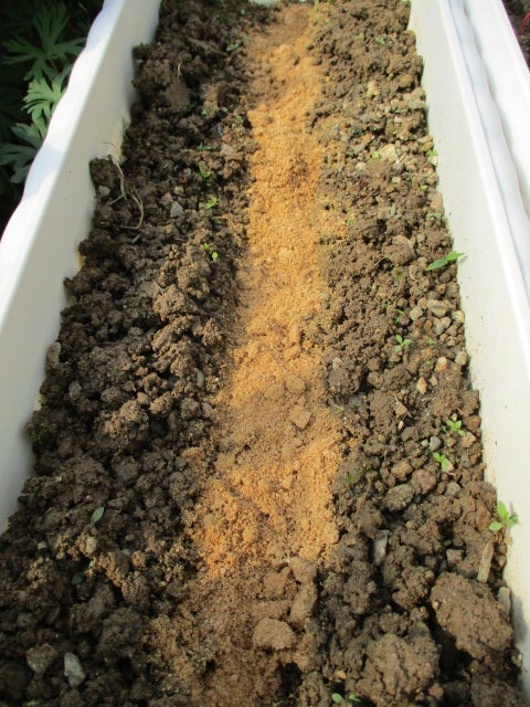 その後土を被せ溝の両サイドに種を蒔けば収穫まで水やりだけで栽培ができます。