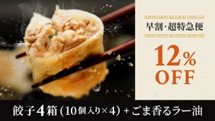 【早割・超特急便】絶品肉汁餃子4箱(10個入り×4)+赤女将 ごま香るラー油