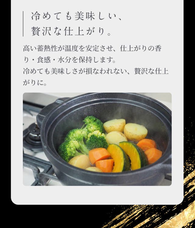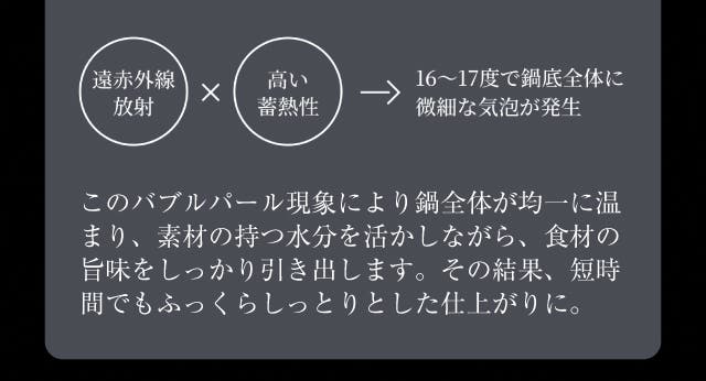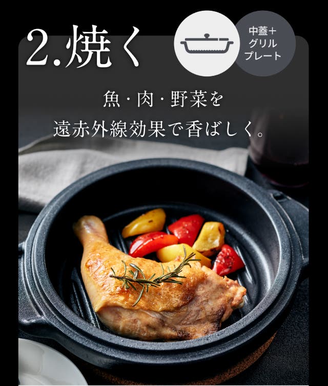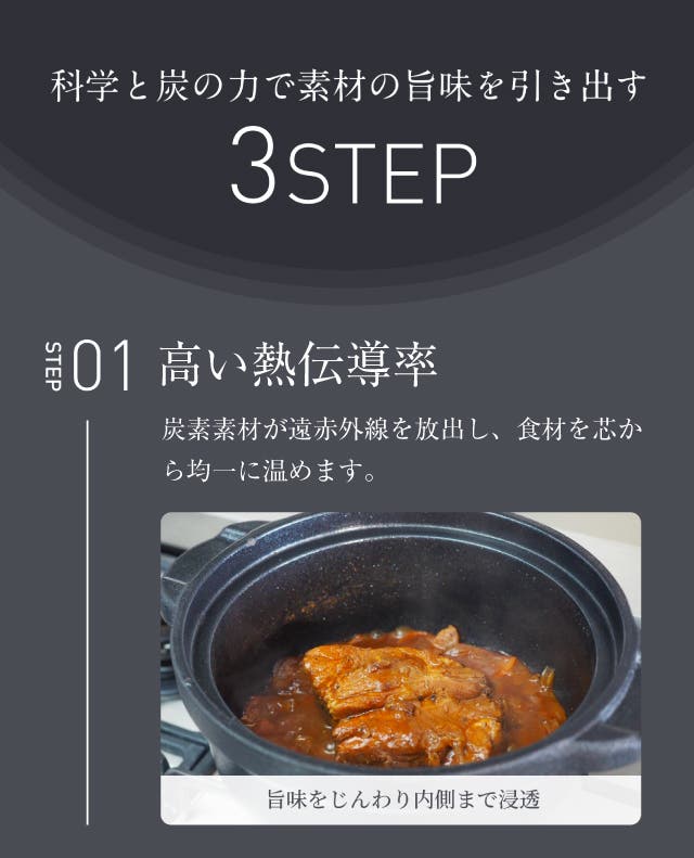 高い熱伝導性と炭の遠赤外線の力で、素材の旨みを逃さず均一に加熱。