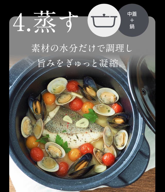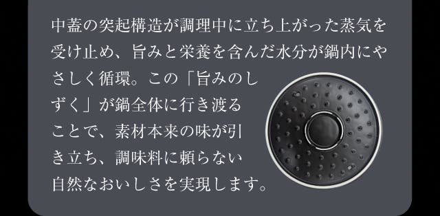 - フッ素、テフロンゼロで安心。炊く・煮る・蒸す・焼くオールインワンポット。