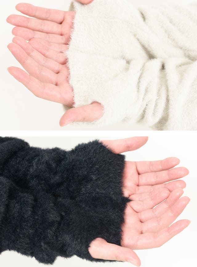 ふんわりと柔らかく、チクチク感がない毛羽のある「特殊なファーの様な糸」を採用しています。