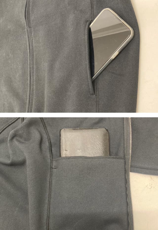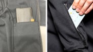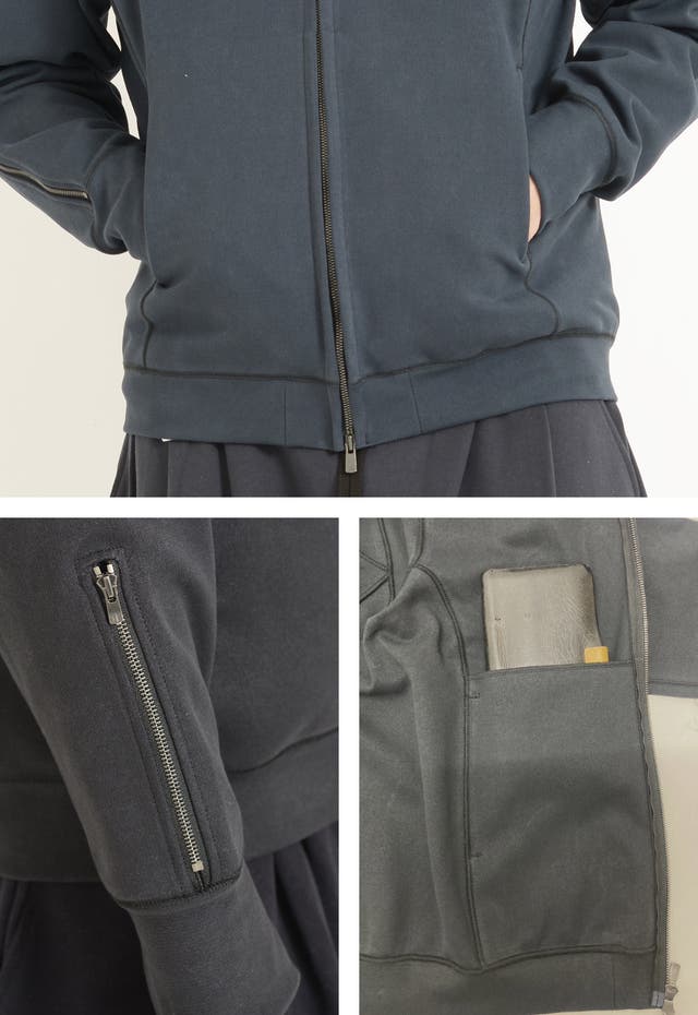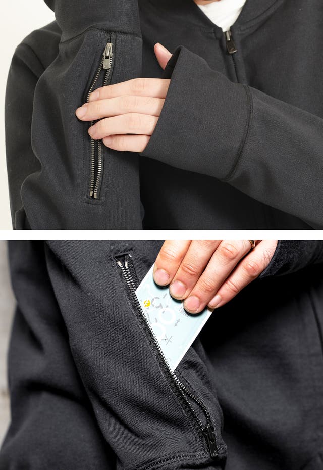 キャッシュカードや鍵などを差し込める袖口のジップ。改札もスムーズに通れたり、買い物での【キャッシュレス】にも対応。