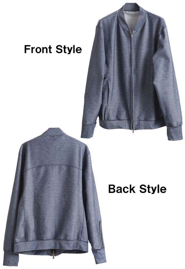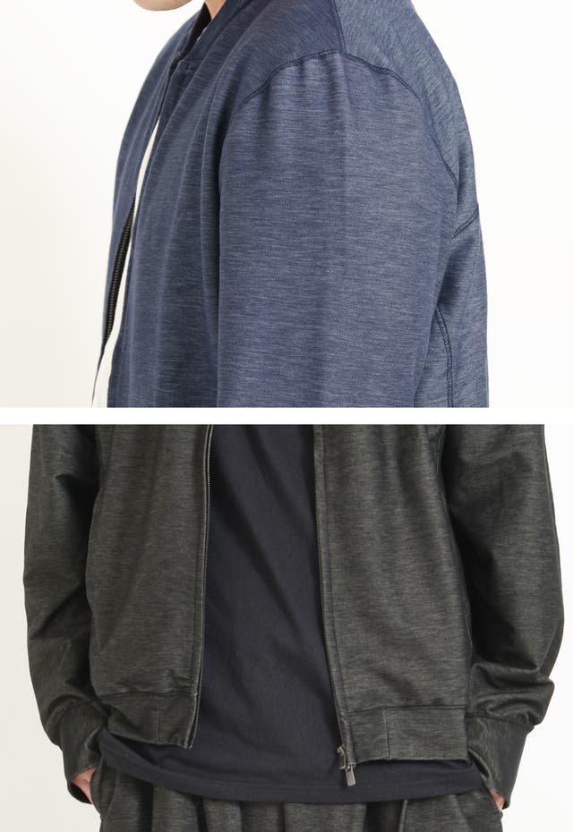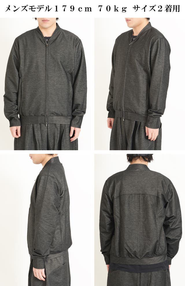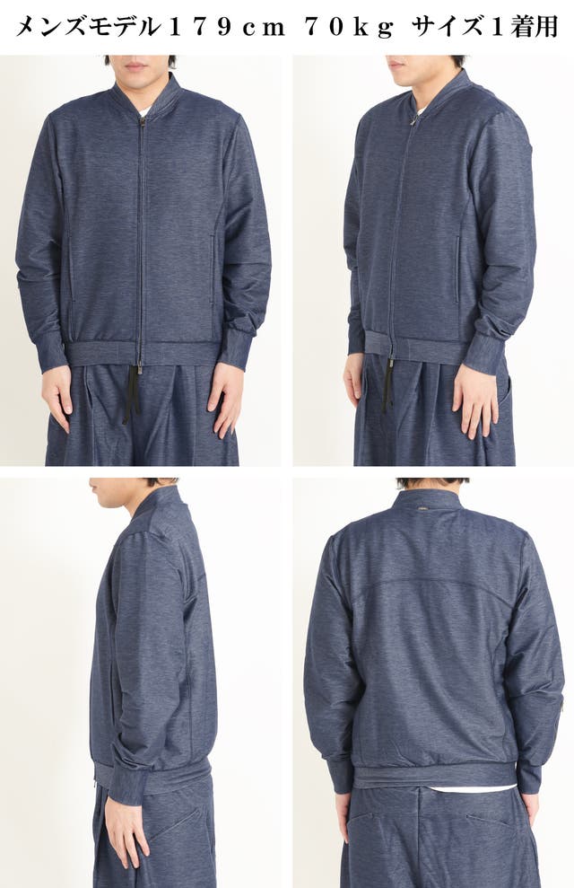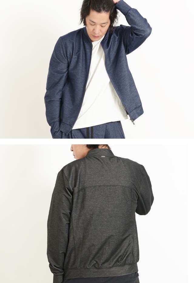 リアルデニムよりも色落ち、色移りがしにくいデニムジャージー素材で、家庭洗濯可能な【イージーケア性】を兼ね備える事で、非常に扱いやすいブルゾンです。
