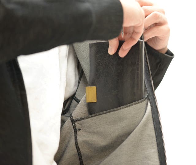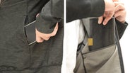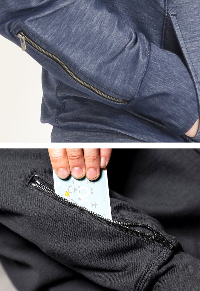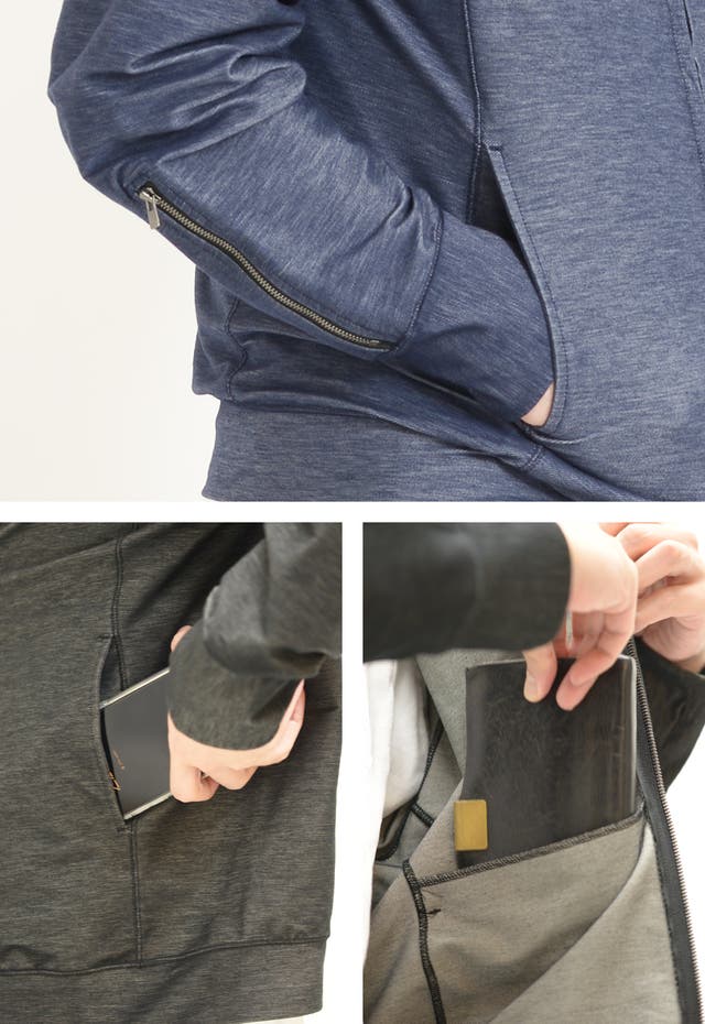 キャッシュカードや鍵などを差し込める袖口のジップ。改札もスムーズに通れたり、買い物での【キャッシュレス】にも対応。