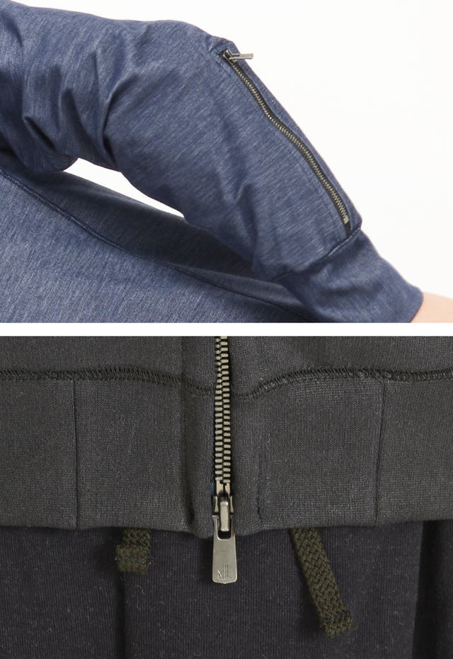 フロントには「上からも下からも開ける事が可能」な逆開きダブルジップ。袖口のジップ共にYKK社の高級ファスナー【EXCELLA®】を採用し、エレメント1つ1つに入念に磨きをかけた滑らかで高級感漂うファスナーです。