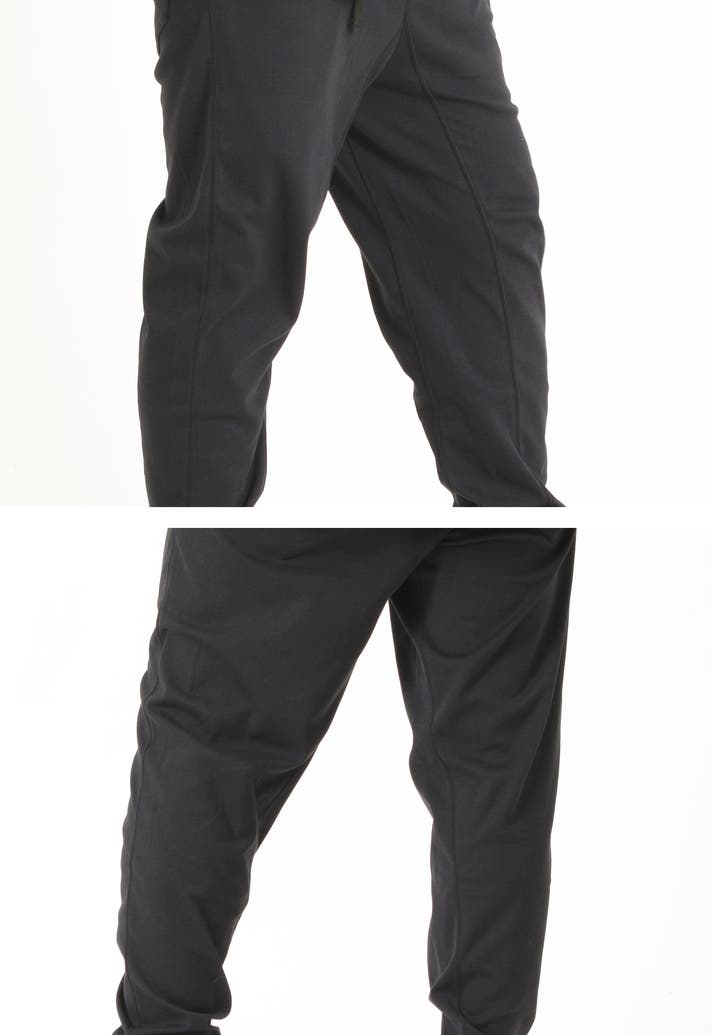 素材の伸縮性を活かす為に、股下内側にパーツを追加することで、横の動きや可動域が広がり、着用時をより快適に過ごせます。裾に向かって絞り込む【テーパードシルエット】で下半身をスマートに、ジョガーパンツの様にスッキリとさせています。