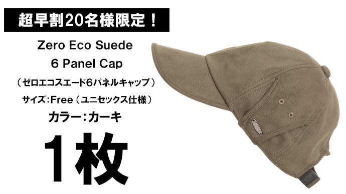 ①超早割20名様限定!Zero Eco Suede 6 panel cap 1枚 ¥9,900(カラー:カーキ)