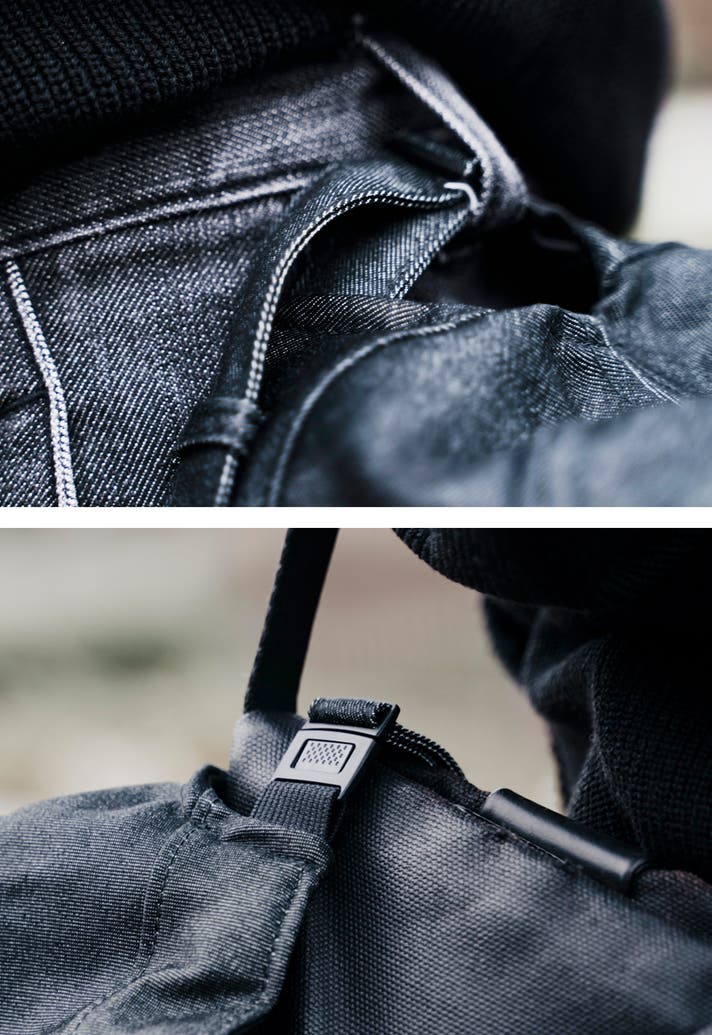 アジャスター付きでサイズ調節ができ、絶妙なサイズ感を構築し、大きいサイズの方まで対応可能にしています。カバンやベルトループに通して持ち運びも可能で、「手ぶら欲求」も満たします。