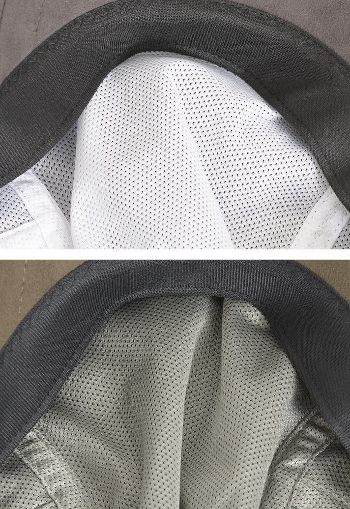 しっかりとしたカーブを保持し、つばが下に落ちずに状態をキープしてくれる硬いつば芯を使用する事で、シャープなシルエットを形成するキャップになります。