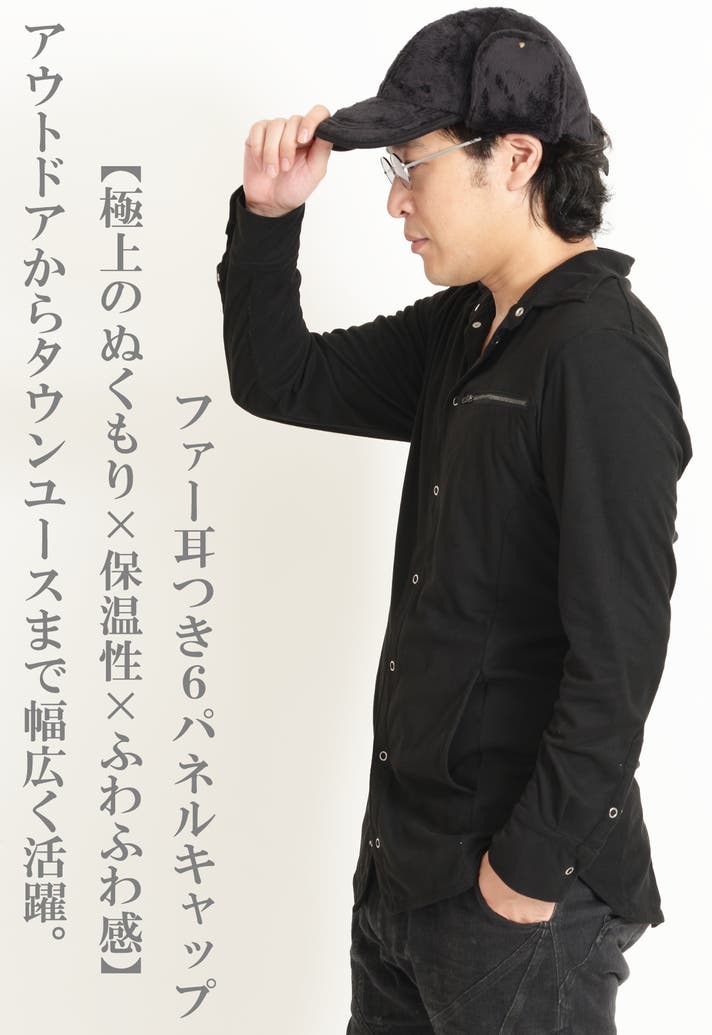 【超早割20名様限定】マイクロファー耳つき6パネルキャップ1枚(色:黒)
