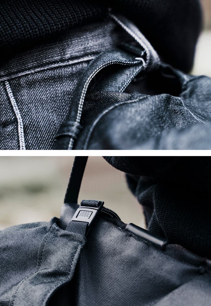 少しでも雨や水滴を避けれるようデニム素材に【撥水加工】を加えています。