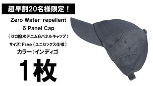 【早割30名様限定】zero撥水デニム6パネルキャップ1枚