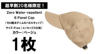 ①超早割20名様限定!Zero Water-repellent Denim 6 panel cap 1枚 ¥8,580(カラー:ベージュ)