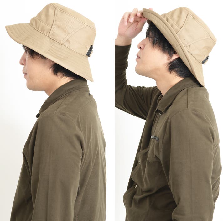 バケツをひっくり返したようなシルエット【バケットハット型】デザインに落とし込んでいます。男性、女性に関わず、ユニセックスとして対応でき、タウンユースは勿論、キャンプや釣りなどのアウトドアからスポーツまで幅広く活躍します。