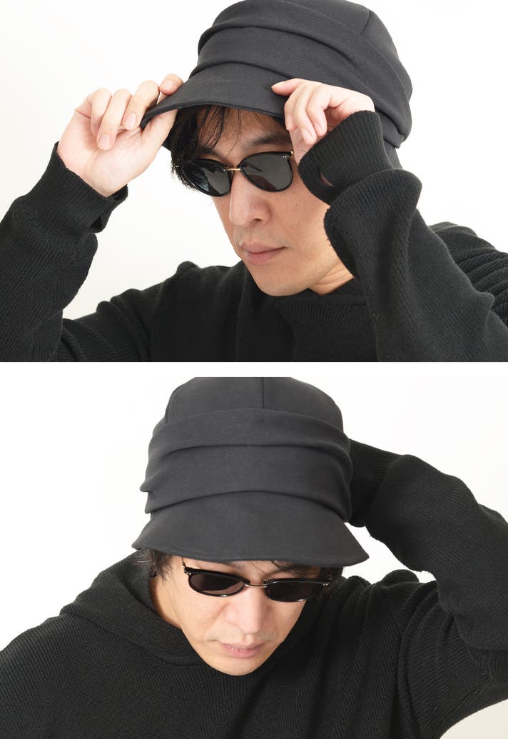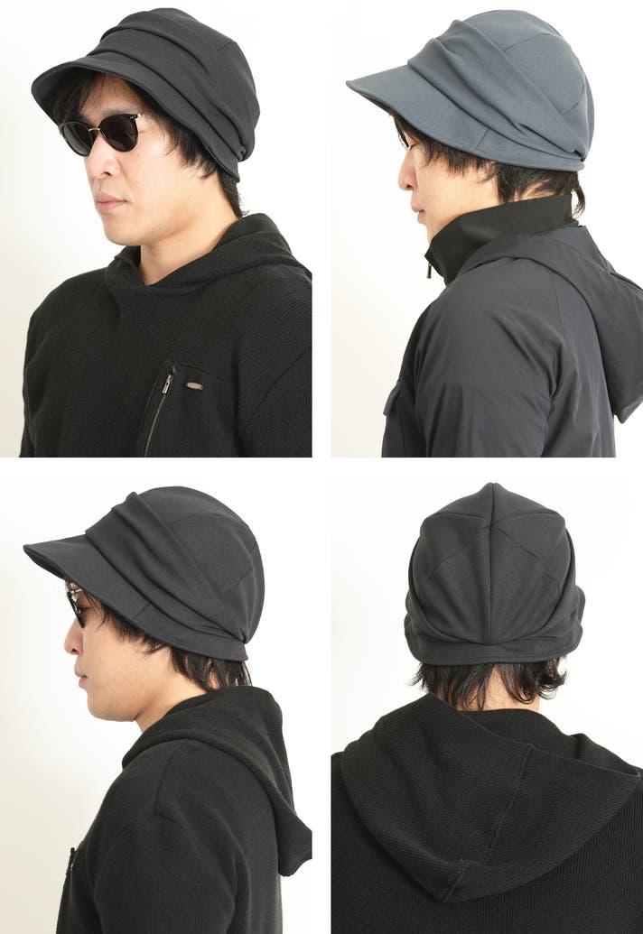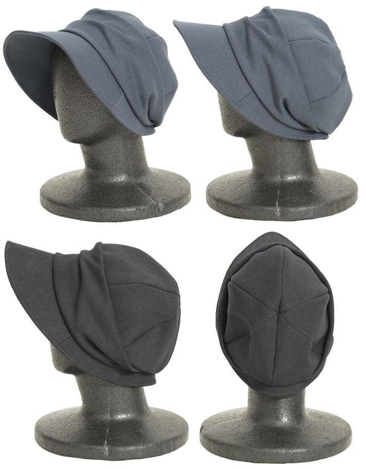 天辺のクラウン部分は6パネルで構成し、つばとの間にドレープデザインを加え、ゆったり被れる深さのあるキャスケット。キャップの様な、ハットの様でもある絶妙なシルエットの帽子にデザインしています。
