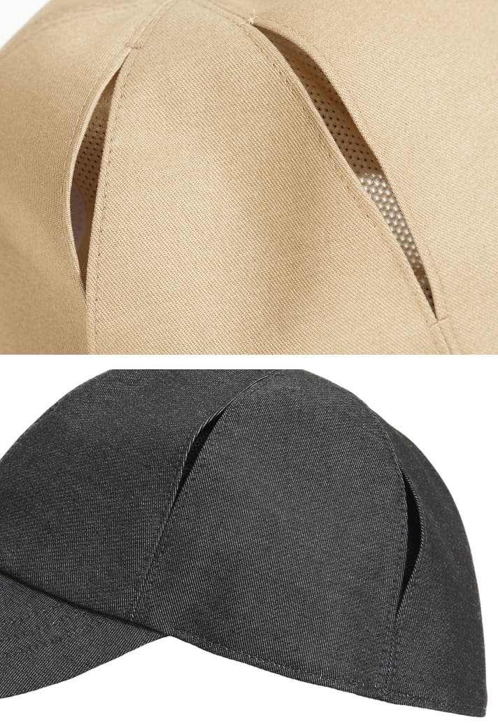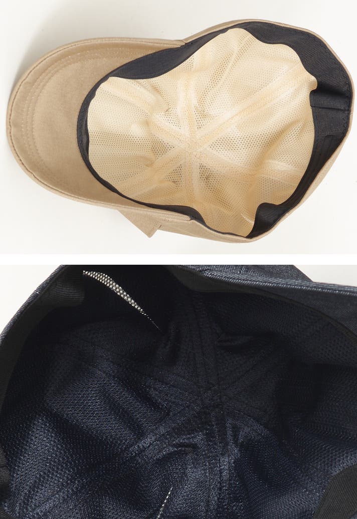 縫い目に沿って4つの切り込み(スラッシュ)を入れてる事で、風が通り抜ける帽子になります。抜群の通気性があり、涼しいかつムレにくい仕様のデザインです。