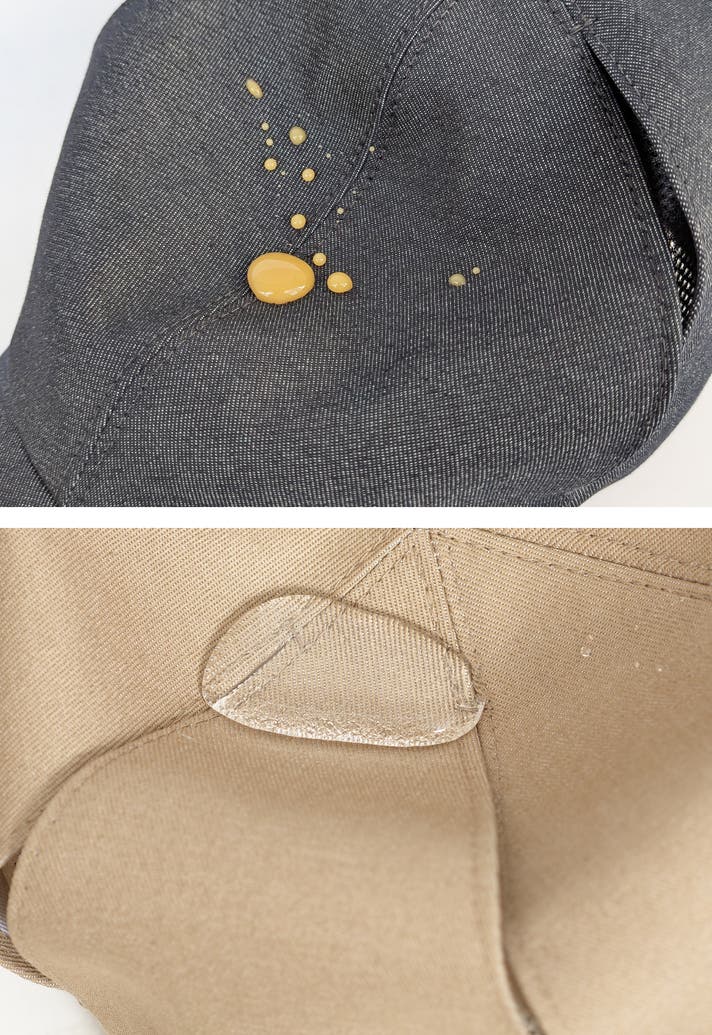 水を転がり落とす撥水性で「濡れる」ストレスを軽減します。(防水ではなく、強い雨や長時間の雨を完全には凌げませんのでご注意下さい)