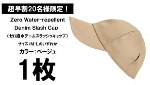 ①超早割20名様限定!Zero Water-repellent Denim Slash Cap 1枚 ¥8,580(カラー:ベージュ)