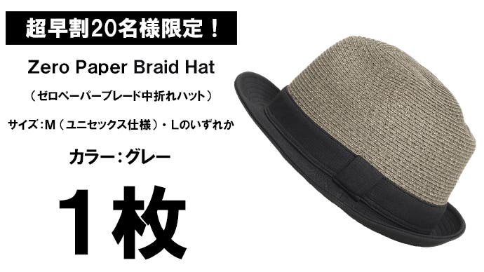 【超早割20名様限定】zeroペーパーブレード中折れハット1枚(色:グレー)