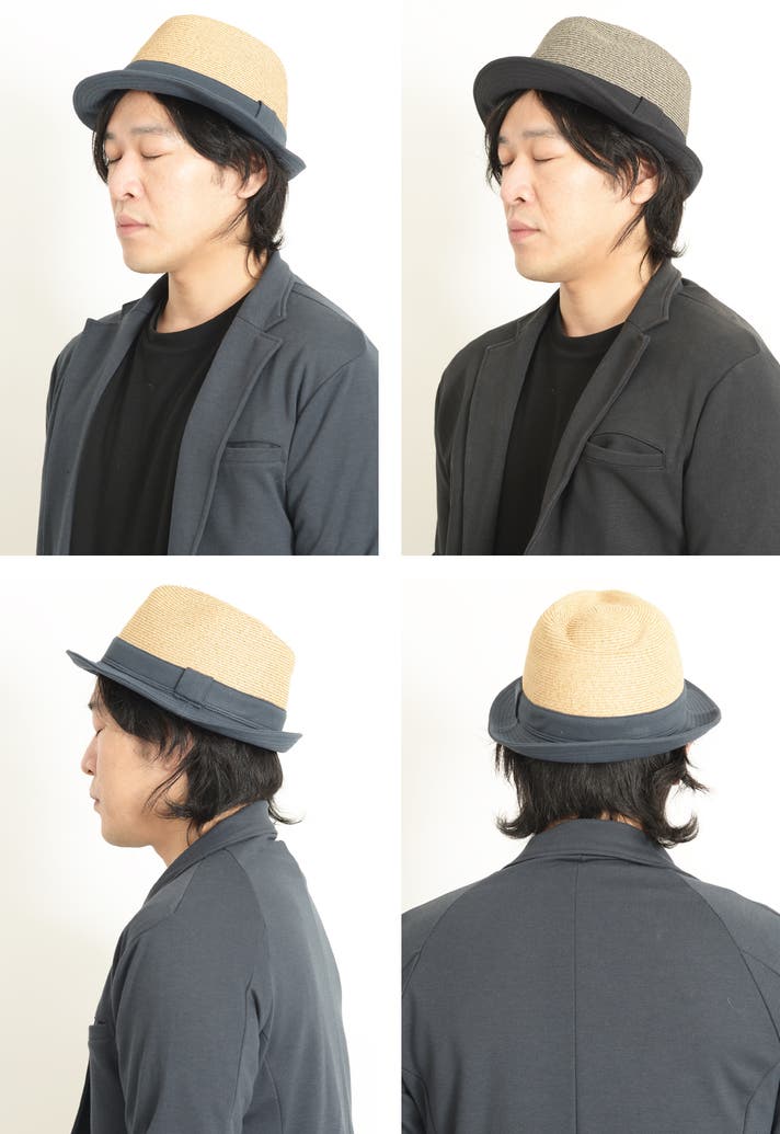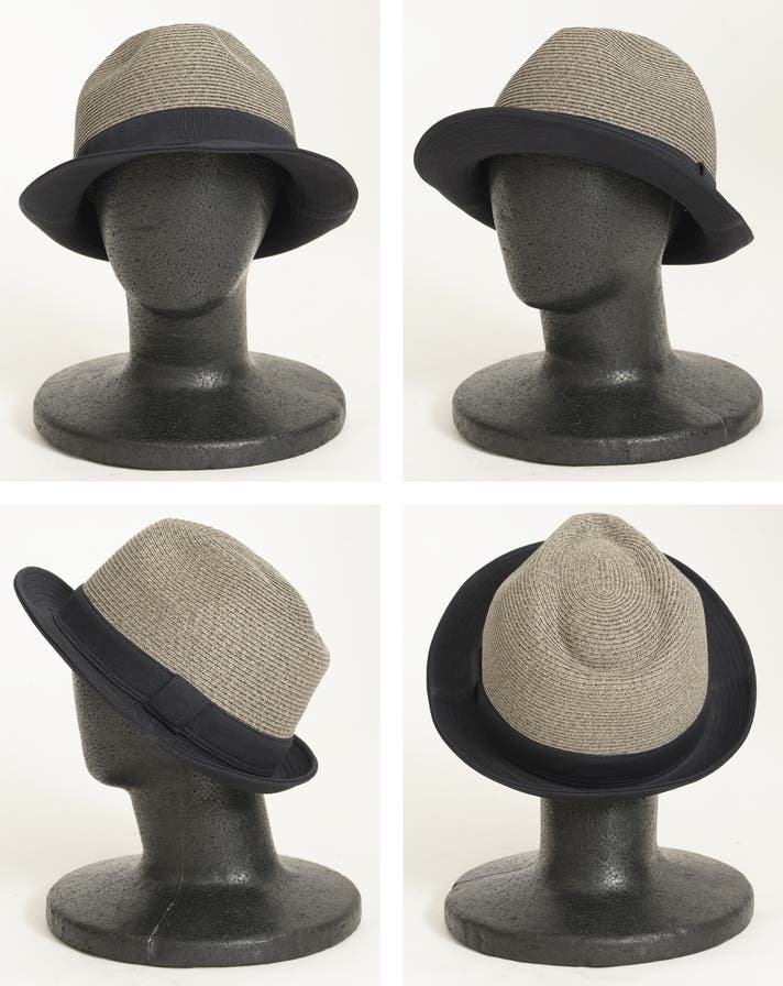 頭部分には、テープ状の素材を細長いリボン状に加工したものを螺旋状にぐるぐると縫い合わせて形を作る、麦わらやラフィアの様なブレード素材を採用しています。