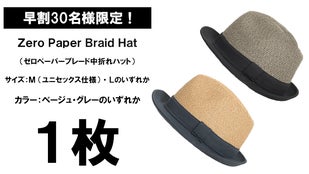 【早割30名様限定】zeroペーパーブレード中折れハット1枚