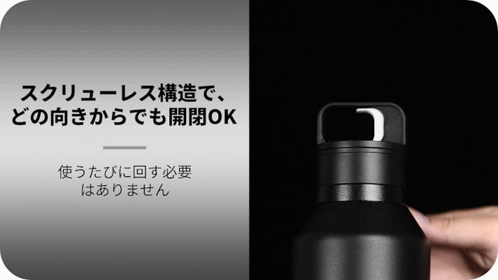 スクリューレス構造を採用し、キャップをひねる必要なし。片手でワンタッチ操作するだけで、ほぼ0秒でパッと開けることができます。