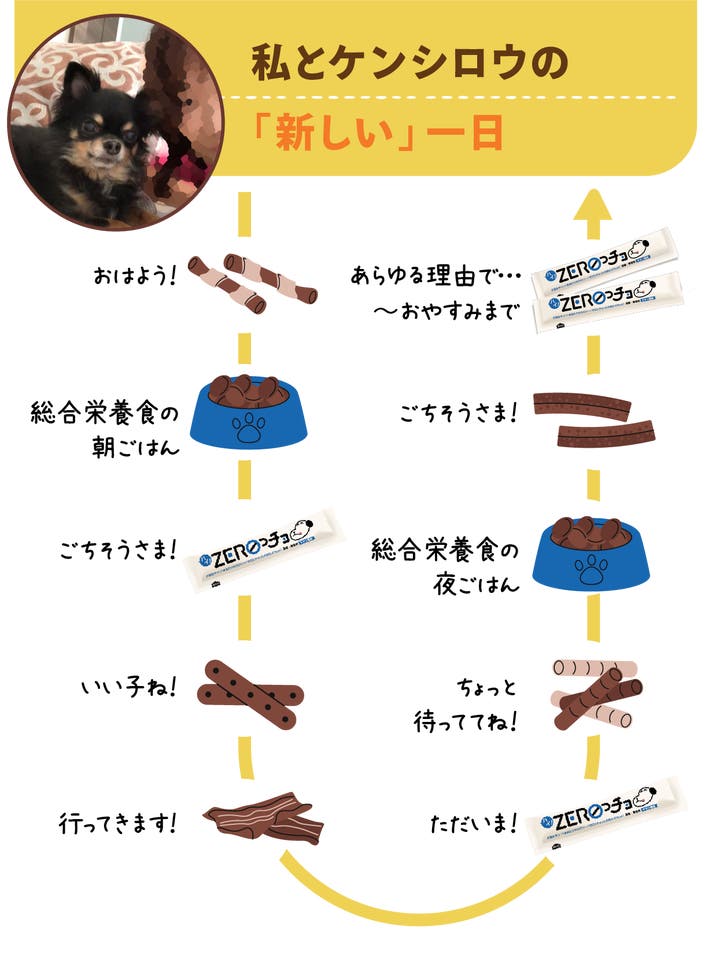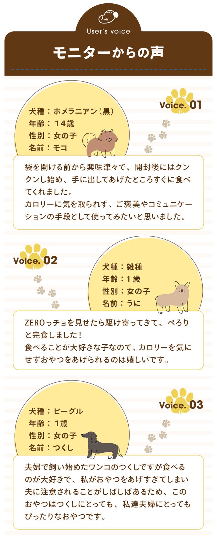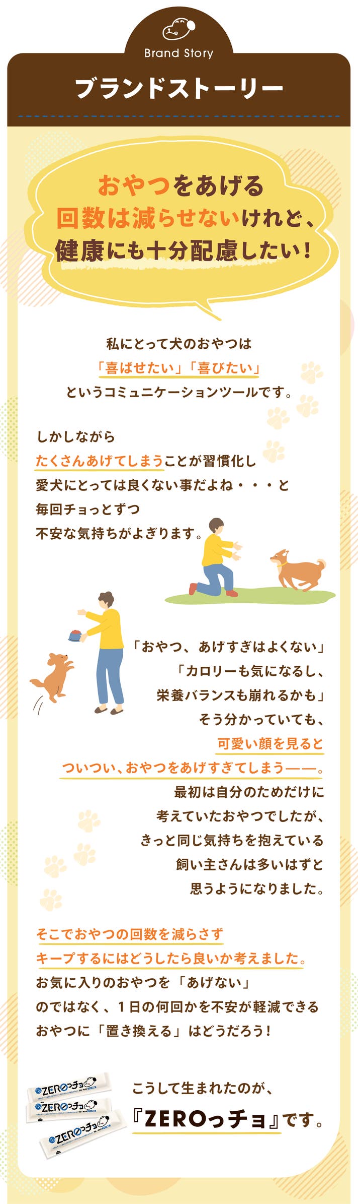愛犬のためそして飼い主さんの「おやつあげすぎかも・・・」という不安をチョっと軽減できるおやつを作りたいな。そうしてZEROっチョは出来ました。