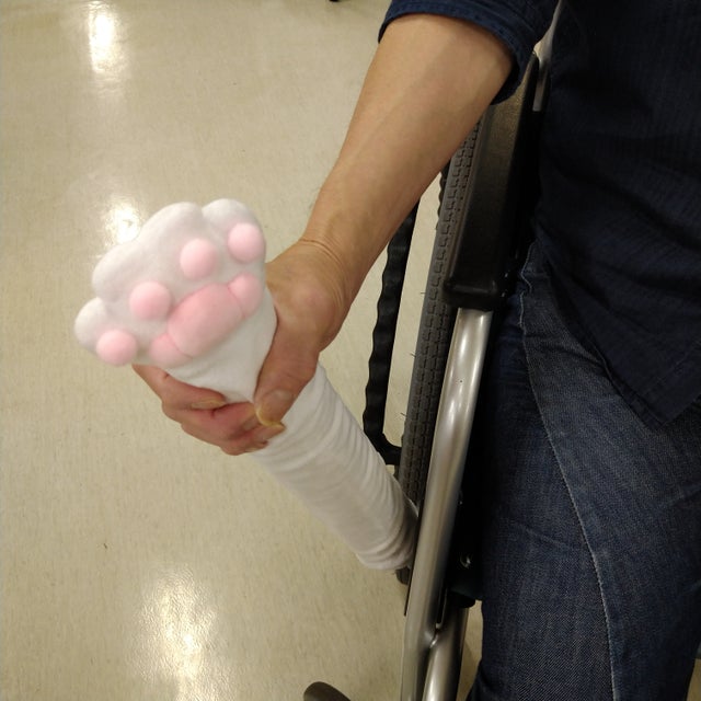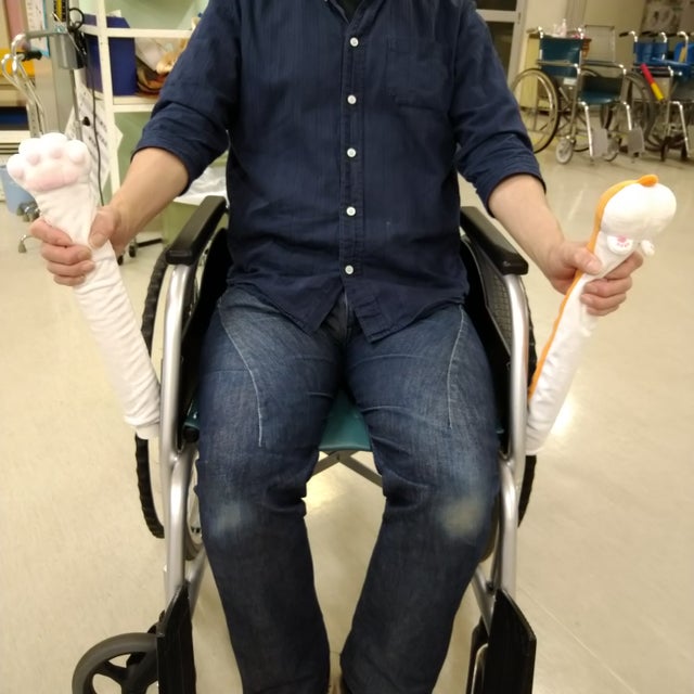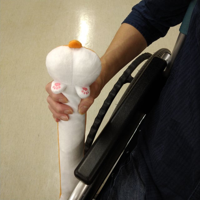 ブレーキ補助具だけでは素っ気ないですがカバーを被せれば愛くるしいお供が毎日の車椅子生活に楽しさをブラスします。