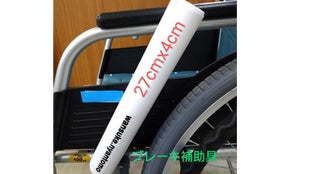 車椅子のブレーキに筒状のブレーキ補助具(27cmx4cm)を差し込み使用します。