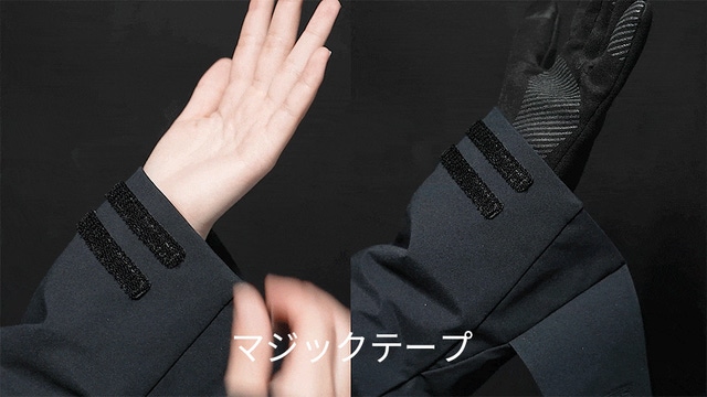 袖口の側面は手首がマジックテープを採用。手袋と袖の隙間から風と雪が入るのを防ぐので、保温性Good!