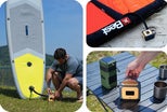 Zetta 138には、SUPやエアテントに対応したノズルを含む全6種類のアタッチメントが付属されています。さまざまなインフレータブル製品に対応できるので、これ1台でアウトドアギアを一括管理します。浮き輪、カイト、エアベッド、キャンプ用マットなどにも幅広く活用できます。