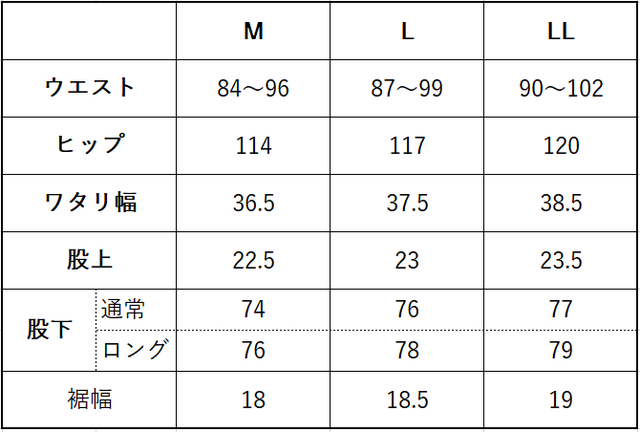 ※パンツの股下は通常とロング丈の2種類からお選びいただけます。