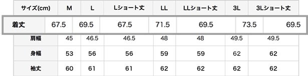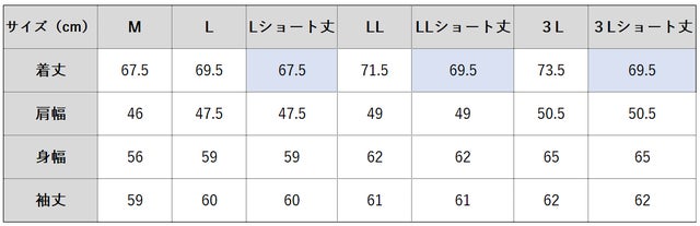 M・L・Lショート・LL・LLショート・3L・3Lショート