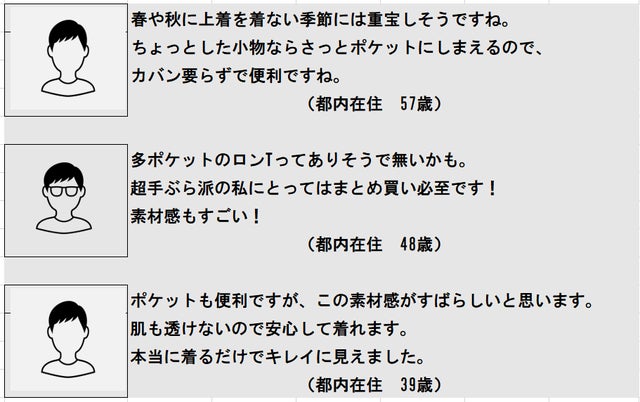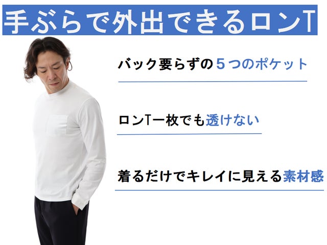 試行錯誤を繰り返しながらやっと完成した、その名も『手ぶらで外出できるロンT』手にとったみなさまが、この着心地や機能に感動していただけることを開発者一同、願っております。