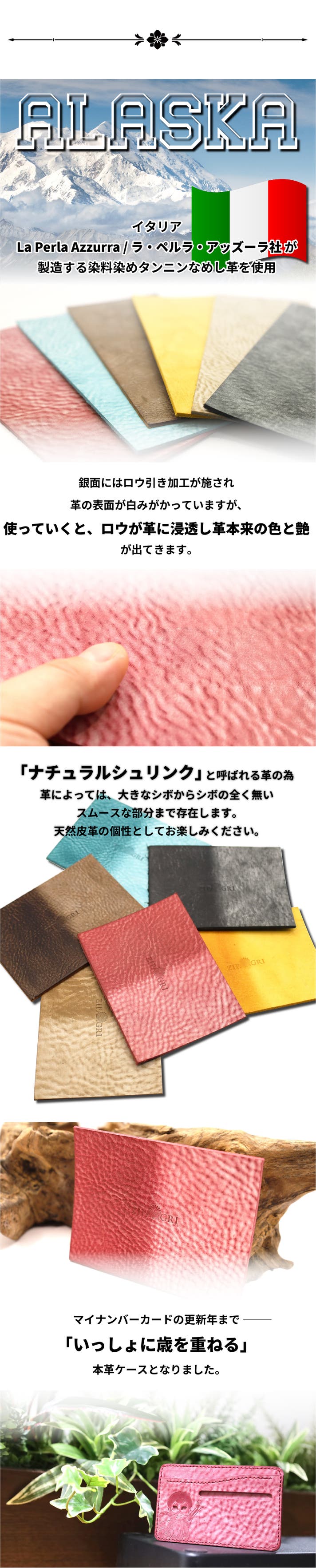 - 発色の良いイタリアンレザー|ALASKA 性別不問で手に取りやすいカラーをご用意しました!!
