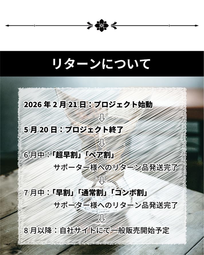 このプロジェクトはAll in型です。目標金額の達成に関わらず、プロジェクト終了日の2026年05月20日までに支払いを完了した時点で購入が成立します。