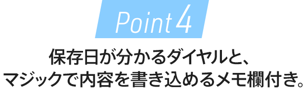さらにマジック※で内容物を書き込めるメモ欄も付いているので、賞味期限や中身を書いておけば忘れることもありません。