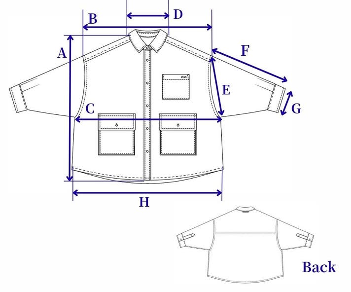 ■ラフに着られるようたっぷり用尺を取った身幅はメンズサイズ
