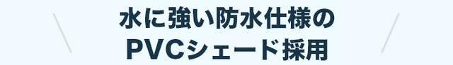 ライト本体は濡れても大丈夫な防水仕様を採用しているため、天候が急激に変化し本体が多少濡れたままでも利用できるのが特徴です。水に強い防水仕様のPVCシェードを採用しており、ライトの設置場所を気にする必要はありません!